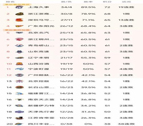 北京時間4月13日,今晚的CBA常規(guī)賽第38輪結束了剩下的7場比賽,我們看看最新排名的變動,主要的戰(zhàn)況是:深圳126-113戰(zhàn)勝四川,遼寧80-75險勝山東,浙江稠州97-98憾負福建,北控102-89戰(zhàn)勝山西,廣州80-67輕取江蘇,吉林81-98不敵南京,天津100-98險勝新疆!