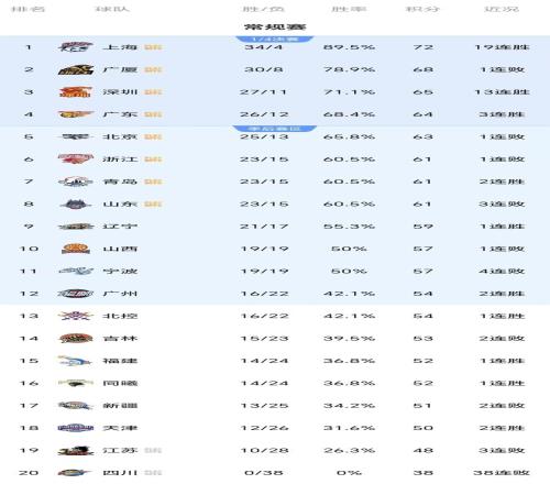 CBA常規(guī)賽冠軍誕生!深圳送四川38連敗遼寧掀翻山東附最新排名