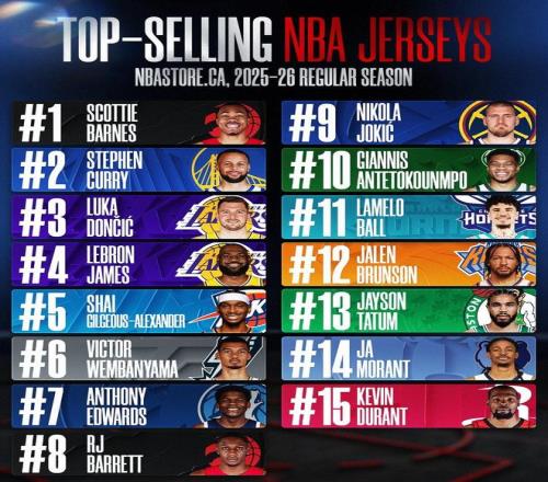 加拿大NBA球衣銷量排行:斯科蒂巴恩斯第一,庫里第二