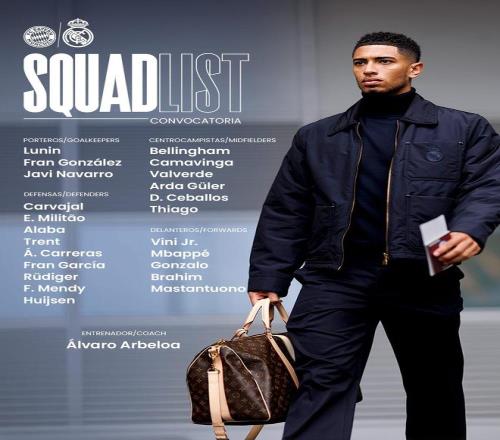 皇馬客戰(zhàn)拜仁名單:姆巴佩、維尼修斯領(lǐng)銜,庫(kù)爾圖瓦繼續(xù)缺席