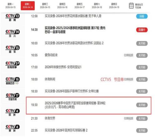 抖音短視頻:《@CBA》中藍(lán)聯(lián):《2025-2026賽季CBA聯(lián)賽常規(guī)賽第38輪綜述》2026年4月14日央視網(wǎng):《CCTV-5體育頻道高清直播》