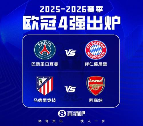 =歐冠四強(qiáng)名單正式揭曉,拜仁慕尼黑、阿森納、巴黎圣日耳曼、馬德里競技攜手晉級。