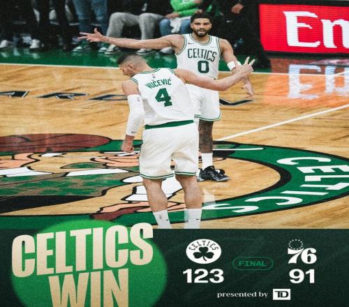 北京時間4月20日,NBA季后賽首輪G1,波士頓凱爾特人主場123-91大勝費城76人,大比分1-0領先。這場比賽恩比德缺席的情況下費城完全不是綠凱的對手,首節(jié)綠凱就領先15分,半場拉開到18分,三節(jié)打完分差已經來 到24分,末節(jié)直接進入垃圾時間。