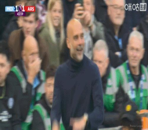 阿爾特塔場(chǎng)邊攔截皮球干擾曼城球員,瓜迪奧拉見(jiàn)狀狂拍大腿