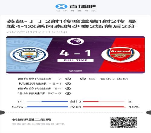 巧合的是,22/23賽季的第33輪英超,也是阿森納vs曼城。賽前,阿森納多賽2場領(lǐng)先曼城5分,而這場比賽阿森納1-4慘敗給曼城。賽后,阿森納多賽2場只領(lǐng)先曼城2分,并最終丟冠。